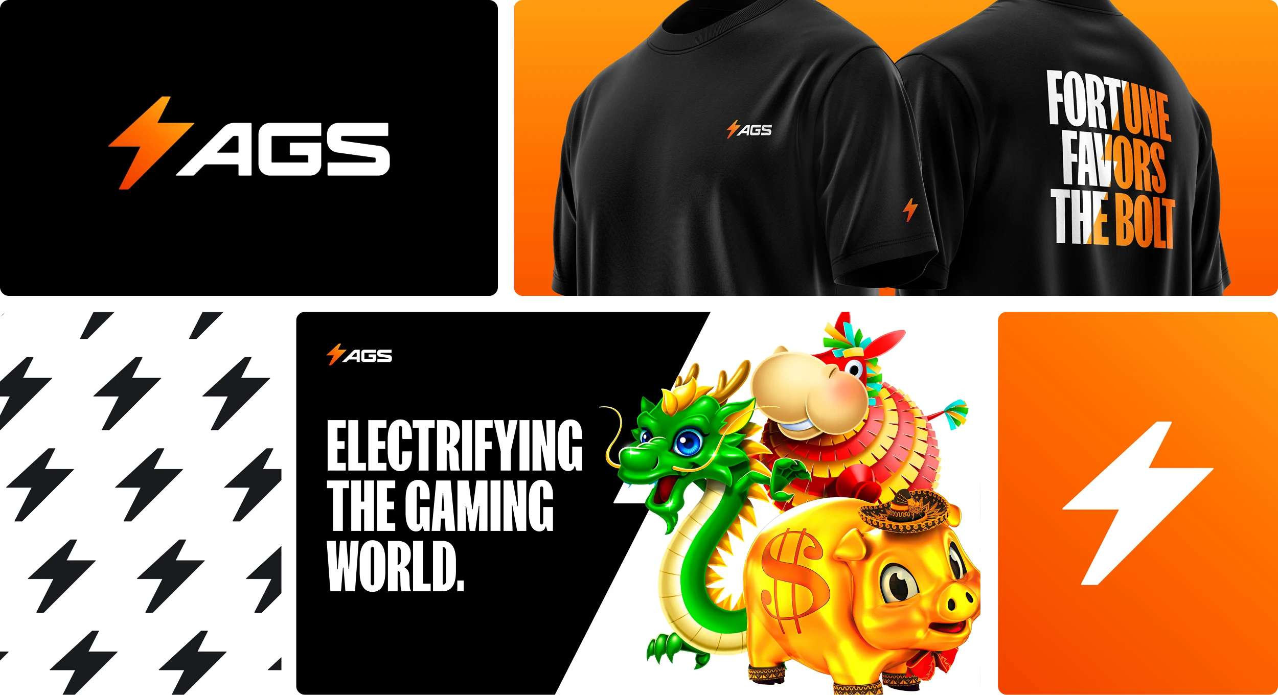 The creative system embodied AGS’s evolution by taking the brand logo from a generic play icon into an ownable lightning bolt. Paired with a refreshed wordmark, the bolt became a signal of power, energy, and attitude. A signal to operators, players, and competitors alike that AGS was here to electrify the gaming world. Headlines like Fortune Favors the Bolt, Win Together and Raise the Stakes amplified this new identity, capturing the voice of a high-performance risk-taker. A unified visual language with adrenaline-charged typography, magnetic color palettes, and disciplined application rules ensured every touchpoint, from digital campaigns to product launches to industry events, brimmed with high-voltage confidence.